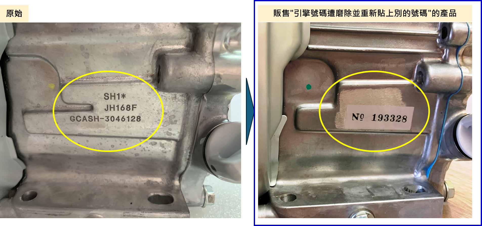 另外,該產品因引擎號碼遭磨除,無法登錄保固,亦無法辨識真偽。